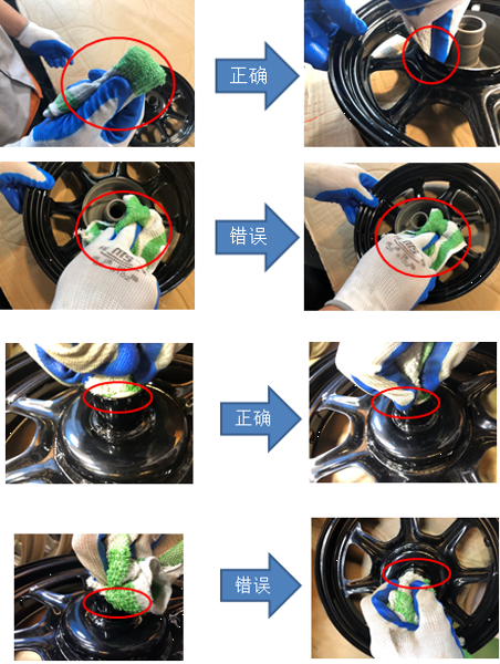 首先、朱新華主任針對(duì)8月份客戶反饋不良信息及不良圖片與在座培訓(xùn)人員展開細(xì)節(jié)講解,他于會(huì)上提到:8月份特黑產(chǎn)品共計(jì)發(fā)貨6180只,其中不良的前輪有76只,后輪96,不良占比2.78%。上述的這些不良,都是由于我司員工在蘸取藥劑進(jìn)行擦拭過(guò)程中,沒(méi)有嚴(yán)格按照作業(yè)標(biāo)準(zhǔn)及其注意點(diǎn)而產(chǎn)生的。這些不良又都是需要經(jīng)過(guò)一段時(shí)間后才能顯現(xiàn),所以,過(guò)程中的標(biāo)準(zhǔn)作業(yè)對(duì)于問(wèn)題的杜絕顯得尤為重要。
