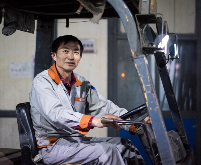 走過涂裝車間你總會聽見這幾句話,“師傅,麻煩叉一下這框毛胚”,“師傅,麻煩幫我叉一下這框產(chǎn)品到下掛處”,你就會看見劉師傅在嫻熟的操作下,鏟腳很準地插進鐵框下面的支架,提起,倒車,轉(zhuǎn)彎,開出車間,穩(wěn)穩(wěn)地放到指定地點上,整個過程一氣呵成。這就是我們的叉車師傅劉曙光。
