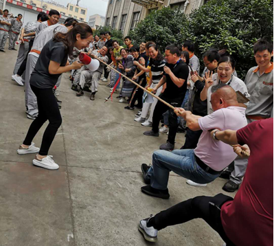 第一個項目比賽是拔河比賽,實行三局兩勝制,參賽隊員共十隊,由各個部門/車間組成。參賽人員不管是來自于辦公室還是各個車間,大家都早已做好了充分準備,奮力拼搏一下,此時大家都紛紛卷起袖子,咬緊牙關,為團隊出盡力氣,每輪兩次比賽,交換位置,圍觀的人員在一旁大聲吶喊助威,場面很是壯觀和震感。辦公室人員雖不像車間員工每天在車間干力氣活,但在賽場上的氣勢絲毫不輸車間人員,最后通過各組角逐,研發(fā)中心在拔河比賽項目中“衛(wèi)冕奪冠”。